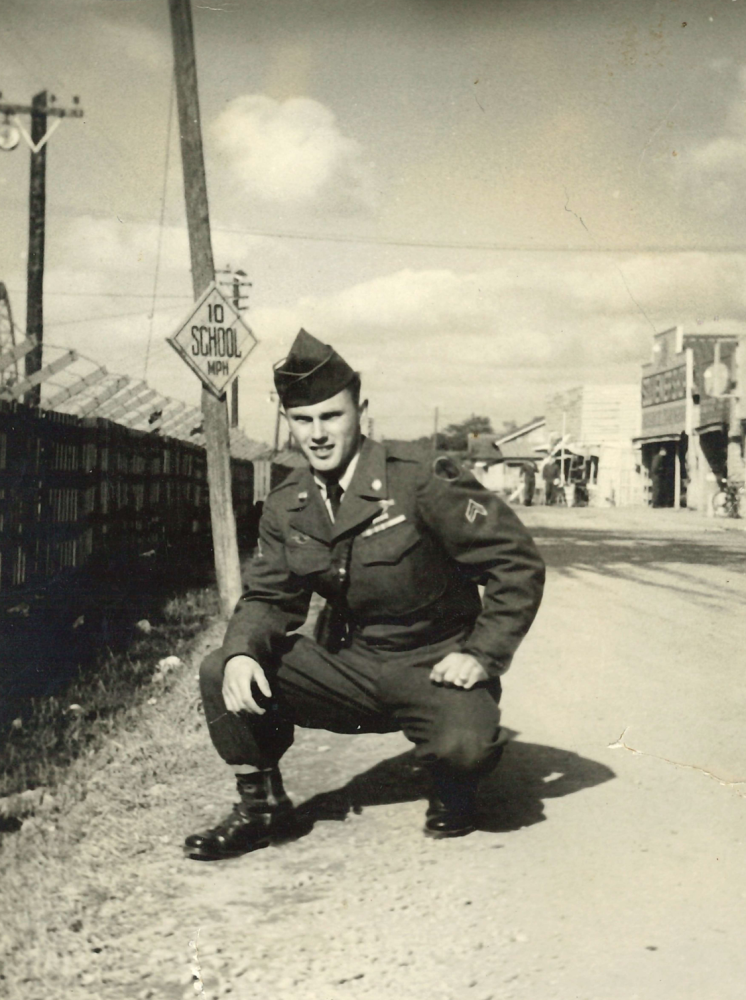 "According to newspaper clippings, my father, Cpl. James J. Hudak, of 804 Waddell Avenue, Clairton, Pennsylvania attended Clairton High school. After being drafted in 1950, he arrived in Korea early 1951. Assigned to U.S. Army Headquarters Battery, 48th Field Artillery Battalion, he was involved in Sniper Ridge and Triangle Hill assaults on the Kumhwa Valley at the Korean Central Front. He received a shrapnel wound in the right arm during a Chinese Communist artillery bombardment and was treated at 279th General Hospital in Osaka, Japan. After recovery he was sent back to the battlefield near Mando, Korea.